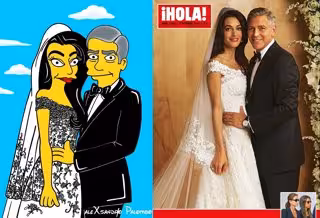 En esta ocasión, Palombo también ha dado protagonismo a las prendas que llevaron Amal y Clooney. No son las primeras celebrities estadounidenses en ser "simpsonizadas", la modelo y actriz Kim Kardashian y su esposo, el rapero Kanye West fueron imaginados por Palombo de un modo muy provocativo, pero siempre con rostro amarillo.