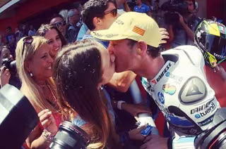 Una alegría que su novia, Carlota Bertrán, compartió con el joven piloto de 22 años, un apoyo sin el que Espargaró no había conseguido cumplir su sueño de ser campeón. La joven casi nunca se separa de su novio, al que acompaña en todos las carreras que puede, convirtiéndose en un verdadero talismán para el piloto.