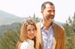 Los Príncipes de Asturias han optado por atuendos informales para un día de paseo. Doña Letizia ha elegido para la ocasión unos pantalones grises de talle alto, una camisa blanca y unas botas beige de cordones con un poco de tacón. Por su parte, Don Felipe ha preferido llevar un calzado más cómodo para andar, unos pantalones de tela vaquera, camisa a rayas y blazer marrón. Es si, ninguno de los dos se olvidaron de llevar sus gafas de sol para una mañana en la sierra.