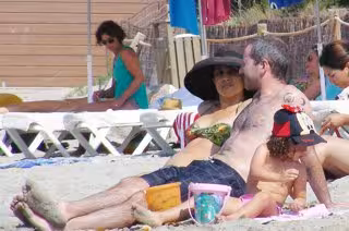 Toni Acosta y el hijo de Raphael, Jacobo Martos, que contrajeron matrimonio en 2002, disfrutaron de una refrescante jornada playera con sus hijos. Además las vacaciones en Ibiza han coincidido con el noveno cumpleaños del pequeño Nicolás, una fecha muy señalada para toda la familia.