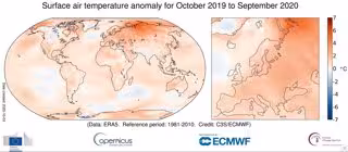 A nivel mundial y en Europa, septiembre de 2020 fue el septiembre más cálido desde que hay registros, con un promedio global de 0,05 C más cálido que el anterior septiembre más cálido, el de de 2019.