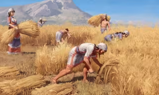 Familia de la Edad de Bronce cosechando grano. - NIKOLA NEVENOV