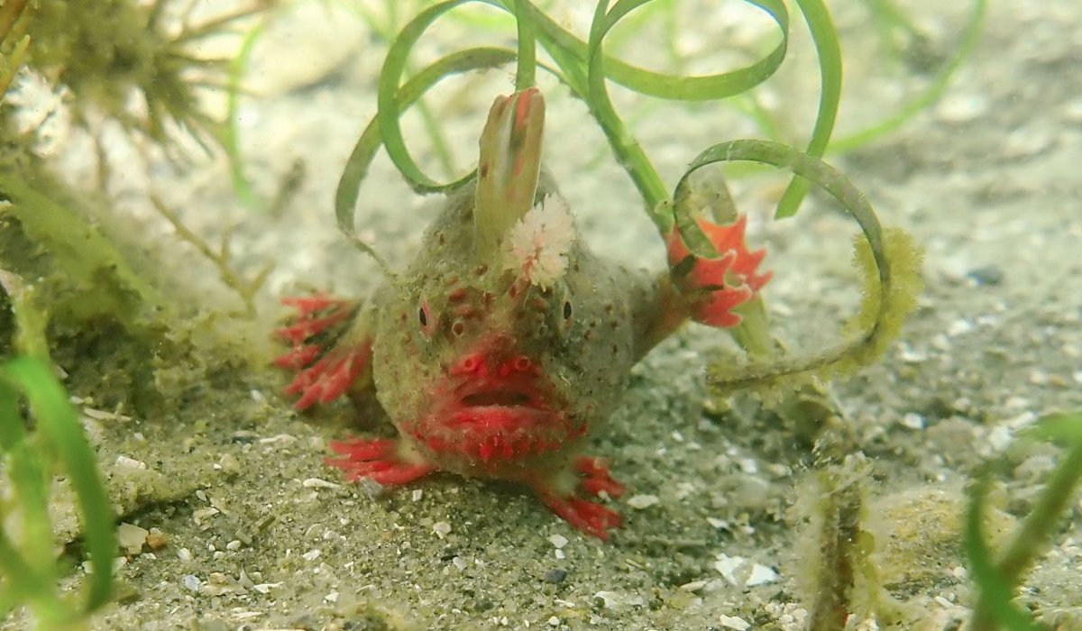 El pez mano rojo Thymichthys politus es una pequeña especie de rape en peligro crítico de extinción, que normalmente mide unos 8 cm de largo y varía en color desde el rojo brillante hasta el rosa claro o el marrón. Se estima que quedan menos de 100 individuos en estado salvaje, que viven en dos pequeños parches de arrecife rocoso en la bahía Frederick Henry, al sureste de Hobart.