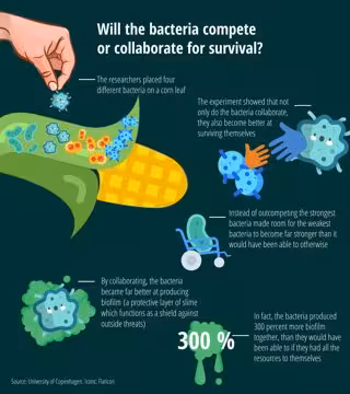 Una nueva investigación microbiana en la Universidad de Copenhague sugiere que la "supervivencia del más cooperativo" supera la "supervivencia del más fuerte" para los grupos de bacterias.