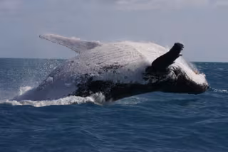 Una ballena jorobada adulta migra a lo largo de la costa oriental de Australia.