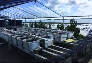 Montaje experimental de mesocosmos en el Instituto de Biología Marina de Hawaii.