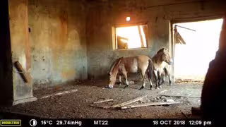 Peter Schlichting, un ex investigador postdoctoral en el Savannah River Ecology Laboratory, utilizó cámaras activadas por movimiento para capturar más de 11.000 imágenes de caballos de Przewalski que utilizaban estructuras abandonadas como refugios, particularmente graneros, que quedaron desiertas después del accidente nuclear de 1986, informa la Universidad de Georgia.