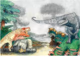 Depredadores gigantes, similares a los cocodrilos que vivieron durante el Triásico en el sur de África, se alimentaron de los primeros dinosaurios y mamíferos parientes hace 210 millones de años.