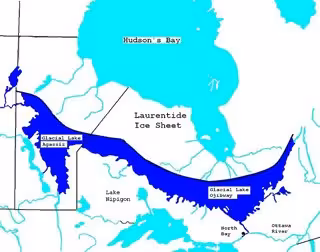Los geólogos conocen desde hace mucho tiempo un lago antiguo, el lago glacial Agassiz, que ocupaba una enorme extensión entre lo que ahora es el sur de Manitoba y el centro de Saskatchewan, hasta la frontera de Alberta. El lago se formó cuando el escudo de hielo Laurentide de tres kilómetros de espesor en la parte superior de la mitad norte de América del Norte comenzó a derretirse hace unos 16.000 años, creando una presa que impidió que los posibles agua de deshielo llegaran a la bahía de Hudson.