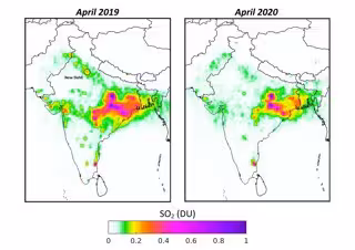 En la India, las emisiones de dióxido de azufre han aumentado considerablemente en los últimos diez años, exacerbando los problemas de turbidez en grandes partes del país. Sin embargo, debido a la pandemia de COVID-19, la actividad humana e industrial ha disminuido considerablemente por el confinamiento a partir del 25 de marzo.
