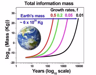 Pasarían aproximadamente 130 años hasta que la energía necesaria para sustentar la creación de información digital equivaliera a toda la energía producida actualmente en el planeta Tierra, y para 2245, la mitad de la masa de la Tierra se convertiría en masa de información digital.