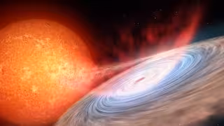 En estos sistemas ambas componentes orbitan tan cerca una de otra que parte de la masa de la estrella cae en el pozo gravitatorio del agujero negro, formando un disco plano de materia a su alrededor. A este proceso se le denomina acreción y al disco resultante, disco de acreción.
