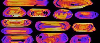 Imagen de catodoluminiscencia de cristales de circón del volcán Nevado de Toluca en México.