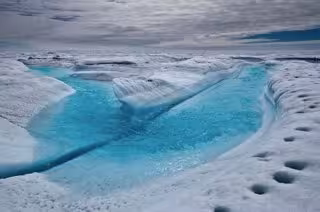 Río de deshielo sobre un glaciar en Groenlandia - IMAGGEO