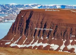 Un acantilado en Jameson Land Basin en el centro de Groenlandia oriental, el sitio más al norte donde se encuentran fósiles de sauropodomorfos.