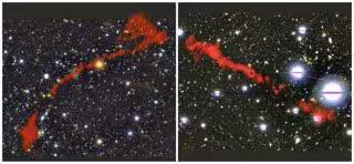 Matthew Prescott, investigador de la Universidad de Western Cape y coautor del trabajo, dijo en un comunicado: "Estas dos galaxias son especiales porque se encuentran entre los gigantes más grandes que se conocen y en el 10% superior de todas las radios gigantes. galaxias. Tienen más de 2 megaparsecs de diámetro, lo que equivale a unos 6,5 millones de años luz o unas 62 veces el tamaño de la Vía Láctea. Sin embargo, son más débiles que otros del mismo tamaño".