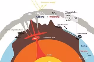 Las enormes erupciones volcánicas pueden producir aerosoles de ácido sulfúrico en la estratosfera y dióxido de carbono en la atmósfera, lo que provoca cambios climáticos globales. Se cree que este rápido cambio climático está detrás de la pérdida de criaturas terrestres y marinas.