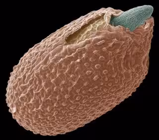 Una semilla en germinación de Arabidopsis observada mediante microscopía electrónica de barrido