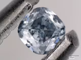 Este primer plano de un diamante súper profundo resalta sus inclusiones, que se ven como puntos negros. Inclusiones como estas proporcionan evidencia geoquímica de que una placa oceánica que se hunde puede transportar agua y otros fluidos en el manto - EVAN SMITH/ 2021 GIA