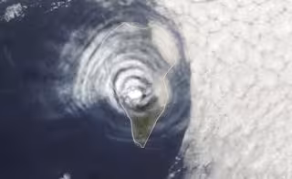 La erupción no ha sido lo suficientemente enérgica como para inyectar grandes cantidades de cenizas y gases en la estratosfera, donde pueden tener efectos fuertes y duraderos en el clima y el clima. Sin embargo, ha sido lo suficientemente fuerte como para producir una columna creciente de emisiones que ayudó a formar el patrón notable en las nubes que el instrumento MODIS del satélite Aqua tomó el 1 de octubre, informa la NASA.
