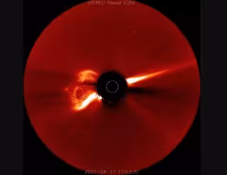 Este evento CME (Coronal Mass Ejection) fue registrada por las misiones de observación solar STEREO-A de la NASA y SOHO de la NASA/ESA y salió del Sol a las 16.36 UTC del 17 de abril.