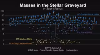 Esta disparidad puede explicarse en parte por el mayor volumen del universo que están probando los detectores de ondas gravitacionales. LIGO-Virgo puede encontrar agujeros negros más masivos con mayor facilidad porque sus ondas son más fuertes en relación con las de los agujeros negros más ligeros, lo que implica que estos podrían ser eventos raros pero ruidosos. ¿Pero cero detecciones de tales agujeros negros usando telescopios? Los agujeros negros, o al menos su entorno cercano, se iluminan cuando devoran lentamente a una estrella compañera. Mediante mediciones del movimiento orbital de la desventurada estrella, se puede determinar la masa del agujero negro.