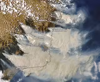Enormes columnas de humo sobre el sureste australiano el 4 de enero de 2020 - NASA