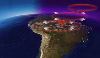 La dínamo se agita en la ionosfera, el límite con carga eléctrica entre la Tierra y el espacio. Está impulsado por vientos de marea en la atmósfera superior que son más rápidos que la mayoría de los huracanes y se elevan desde la atmósfera inferior, creando un entorno eléctrico que puede afectar los satélites y la tecnología en la Tierra.
