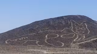 Un nuevo geoglifo figurativo gigante, datado en 2.200 años de antigüedad y correspondiente a un felino, ha sido identificado en la ladera de una colina de la Pampa de Nasca por arqueólogos peruanos.