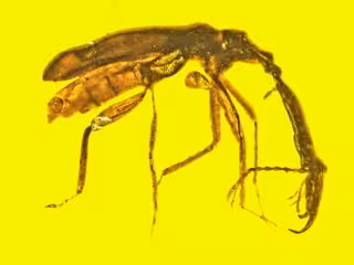 Un gorgojo de 100 millones de años diferente a cualquier otro fosilizado o viviente conocido, que empleaba una trompa enorme para luchar por emparejarse, ha sido descubierto en ámbar birmano.