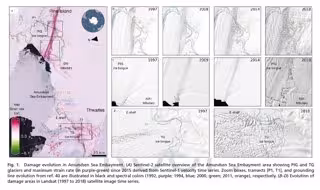 Imágenes de satélite de varias fuentes han ofrecido una imagen más precisa del rápido desarrollo del agrietamiento en las plataformas de hielo de Pine Island y Thwaites, las más grandes de la Antártida.