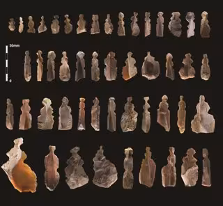 Las figuritas, varias decenas, tienen una antigüedad de entre 9.000 y 10.000 años, y fueron halladas en la excavación de Kharaysin, en Jordania. El hallazgo tiene dos novedades. Una de ellas es el material y el soporte, lascas y láminas de sílex, normalmente asociadas a la producción de herramientas cotidianas. Hasta ahora, todas las figuritas halladas estaban hechas de arcilla o, más raramente, de hueso.