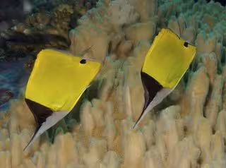 Pez mariposa amarillo de nariz larga, una variedad coralivora
