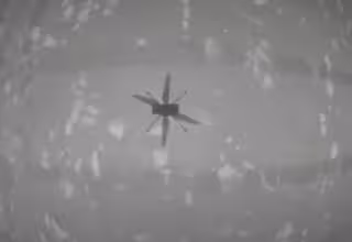 Una cámara en el rover Perseverance, que desplegó el pequeño helicóptero de 1,8 kilos de peso en el cráter Jezero de Marte, registró en imágenes tomadas desde 60 metros de distancia cómo Ingenuity movía las palas de sus rotores y posteriormente se encontraba suspendido en el aire.