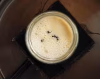Siguiendo un método tradicional búlgaro de elaboración de yogur, los investigadores añadieron cuatro hormigas del bosque vivas a un tarro de leche caliente. - DAVID ZILBER