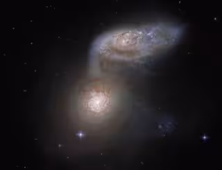 Arp 91 proporciona un ejemplo particularmente vívido de interacción galáctica. NGC 5953 está claramente tirando de NGC 5954, que parece que está extendiendo un brazo en espiral hacia abajo. La inmensa atracción gravitacional de las dos galaxias hace que interactúen. Tales interacciones gravitacionales son comunes y una parte importante de la evolución galáctica, informa la NASA.