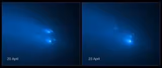 Las nuevas observaciones del Telescopio Espacial Hubble sobre la ruptura del cometa los días 20 y 23 de abril revelan que los fragmentos rotos están envueltos en una cola de polvo cometario barrida por la luz del sol. Estas imágenes proporcionan evidencia adicional de que la fragmentación de cometas es probablemente común e incluso podría ser el mecanismo dominante por el cual mueren los núcleos sólidos y helados de los cometas.