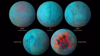 Pero algunas de las mismas características infrarrojas también aparecen en el hemisferio norte. Eso les dice a los científicos no solo que el área norte está cubierta de hielo fresco, sino que el mismo tipo de actividad geológica --una reconfiguración del paisaje-- ha ocurrido en ambos hemisferios. Esta reconfiguración en el norte puede deberse a chorros de hielo o a un movimiento más gradual del hielo a través de fracturas en la corteza, desde el subsuelo del océano hasta la superficie.