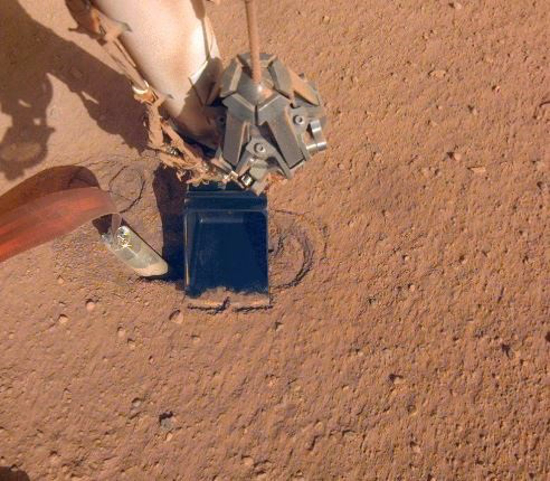 A principios de julio, el brazo robótico del aterrizador retiró la estructura sobre el taladro del experimento HP3, para intentar que el dispositivo, apodado 'topo' y atascado, se ponga en marcha.