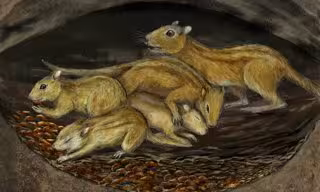 Una reconstrucción artística de un grupo social de Filikomys primaevus en una madriguera. - MISAKI OUCHIDA