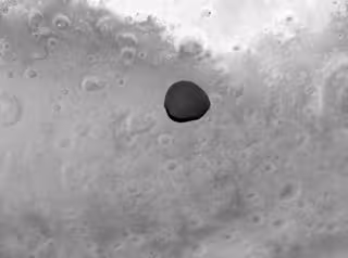 Moviéndose a 9 km/s con respecto a Marte, Hera pudo fotografiar Deimos desde tan solo 1.000 km de distancia, observando la cara opuesta, menos visible, de la luna atrapada por las mareas desde el planeta rojo. Con 12,4 km de diámetro, Deimos, cubierto de polvo, podría ser en realidad un remanente de un gran impacto en Marte o un asteroide capturado.