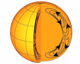 Al comienzo de un ciclo solar, las manchas solares emergen en latitudes medias. A medida que el ciclo progresa, emergen cada vez más cerca del ecuador. Para explicar este "diagrama de mariposas", los físicos solares sospechan que el campo magnético profundo es llevado hacia el ecuador por un flujo a gran escala.
