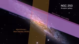 La llamarada gigante alcanzó detectores en diferentes naves espaciales de la NASA. Cada par de instrumentos estableció su posible ubicación en diferentes franjas del cielo, pero las bandas se cruzan en en la parte central de la galaxia NGC 253