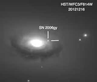 Sin embargo, poco más de un año después de la explosión, SN 2006gy produjo un espectro inusual con líneas de emisión no identificadas. Nadie había descifrado este misterioso espectro, según un comunicado.