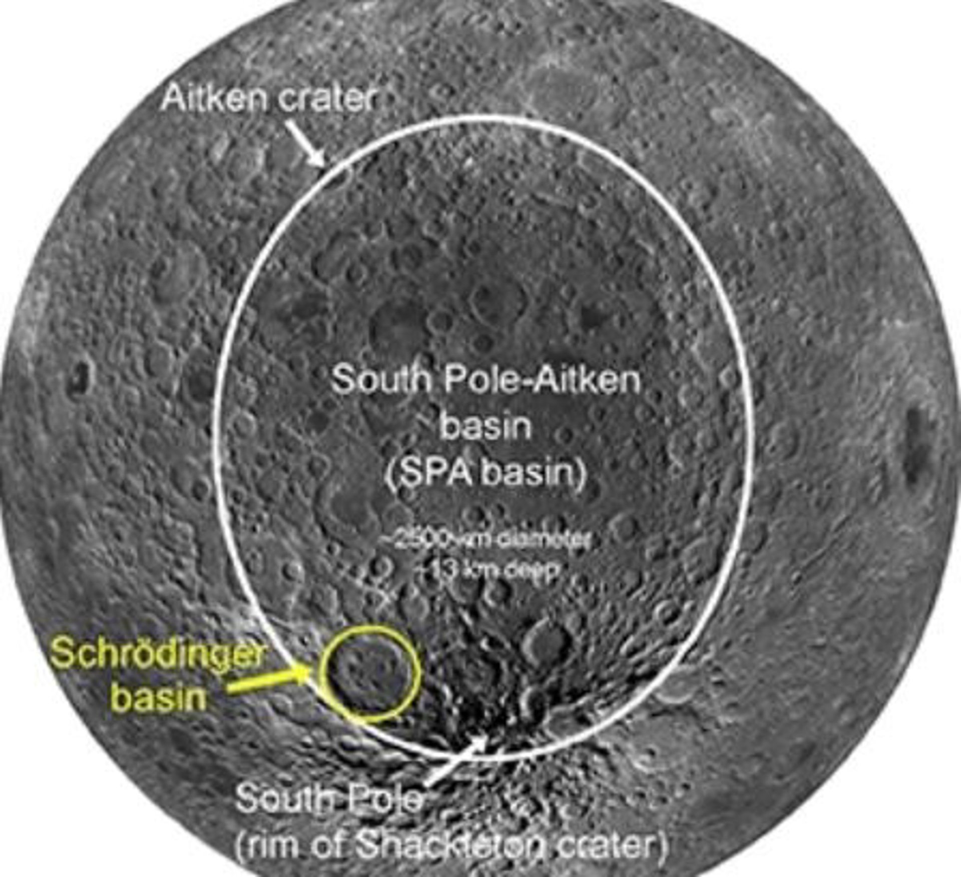 Los investigadores identificaron características geológicas significativas de la cuenca de Schrdinger, ubicada cerca del polo sur lunar. Schrdinger es la segunda cuenca de impacto más joven de la Luna e incluye diversas características de la corteza y tipos de rocas que son importantes para comprender la historia geológica de la luna.