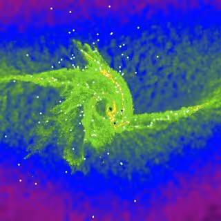 Simulaciones por computadora de astrofísicos japoneses han revelado una nueva teoría para el origen de los agujeros negros supermasivos. En esta teoría, los precursores de los agujeros negros supermasivos crecen al tragar no solo gas interestelar, sino también estrellas más pequeñas. Esto ayuda a explicar la gran cantidad de agujeros negros supermasivos observados hoy.