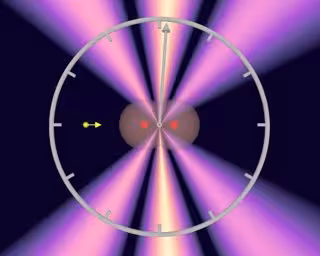 Simultáneamente con el patrón de interferencia, el microscopio de reacciones COLTRIMS también permitió la determinación de la orientación de la molécula de hidrógeno. Los investigadores aprovecharon el hecho de que el segundo electrón también abandonó la molécula de hidrógeno, de modo que los núcleos de hidrógeno restantes se separaron y fueron detectados.