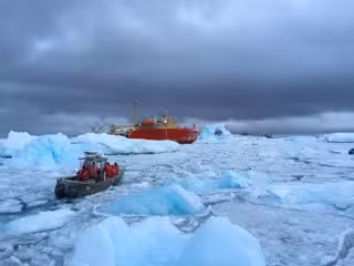 El equipo de investigación viaja desde la estación Palmer hasta el barco de investigación RV L.M. Gould antes de un viaje de pesca de una semana en el Océano Austral.