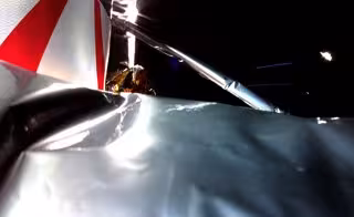 Sin embargo, las baterías han podido ser cargadas con energía recibida en los paneles solares, se ha recibido una imagen que muestra parte de la nave (arriba) y Astrobotic afirma que la misión "conserva suficiente propulsor para seguir utilizando el vehículo como nave espacial".