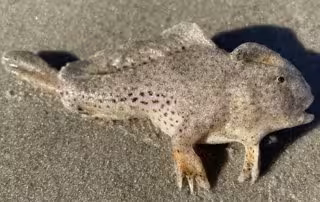 Se cree que el espécimen encontrado, sin vida y con una longitud de entre 8 y 10 centímetros, es un pez mano manchado (Brachionichthys hirsutus). Esta es una de las siete especies de pez mano endémicas de Tasmania y el estrecho de Bass. En Australia hay un total de 14 especies de pez mano.